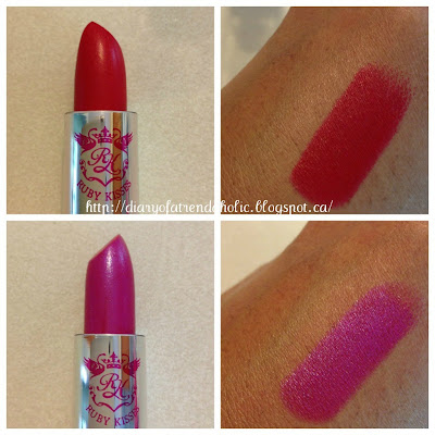 Ruby Kisses lipsticks in the shades: Vamp Red & Velvet Red (Not sure why the pink is called red)